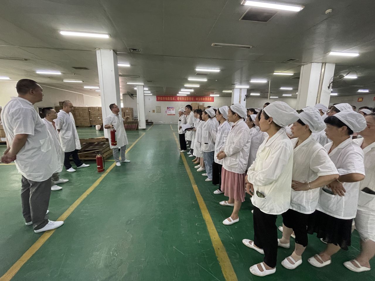 接下來,生產(chǎn)車間班長熊春珍就各種滅火器的正確使用方法詳細進行講解的同時生產(chǎn)車間副主任張鵬輝在現(xiàn)場進行滅火器使用的操作示范,另生產(chǎn)車間副主任杜進就滅火器使用中注意事項進行一一強調(diào)指出,讓員工提升消防安全技能;